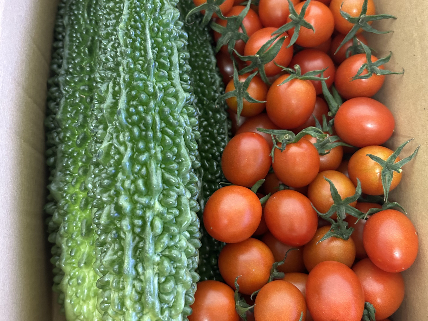 新鮮なゴーヤ、ミニトマトのセットになります!
