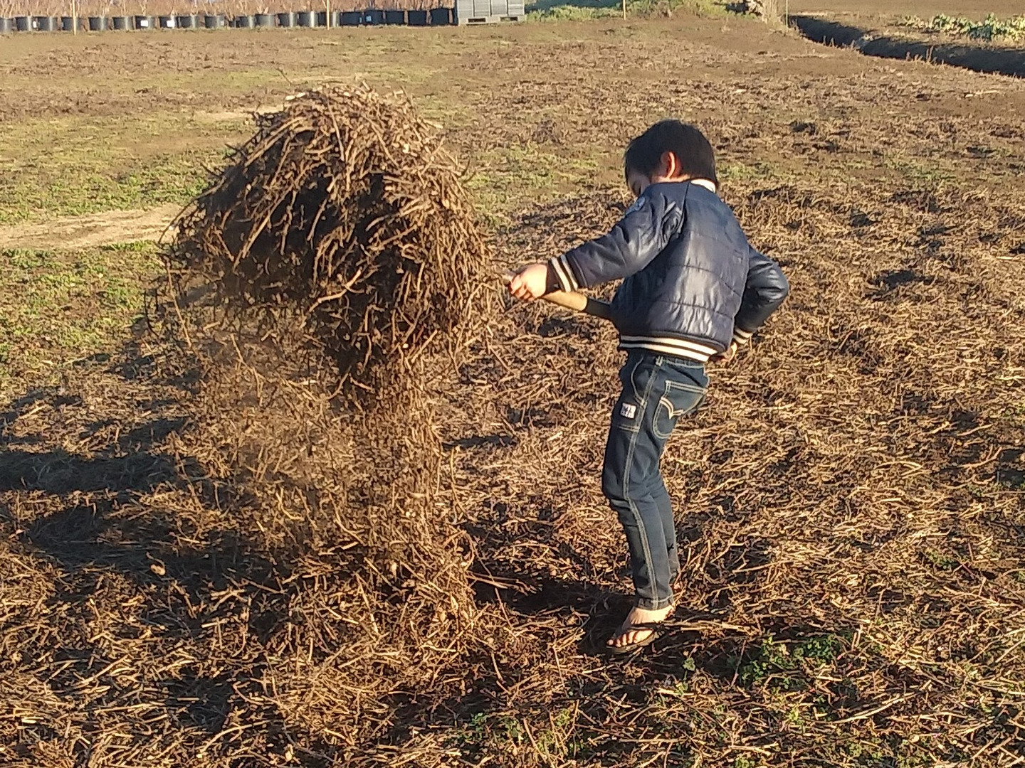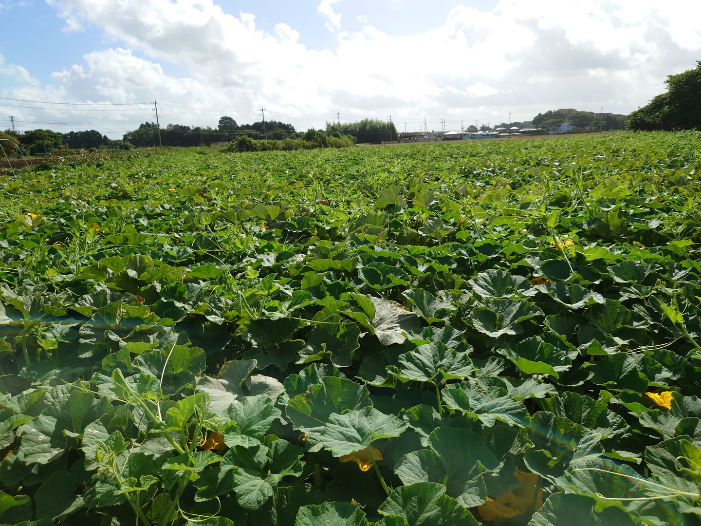 前の年に落花生を育てることで出来上がった土の潜在能力を最も活かせる作物は何かを考え続けてたどり着いたのが『露地栽培のカボチャ』です。栽培のために土に入れた物は昨年栽培した落花生の枝や葉のみです。太陽と土のエネルギーを吸いつくしたカボチャができました。
