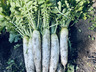 重量過多、曲がり、割れ、皮剥け、病害虫痕等がありの大根です。