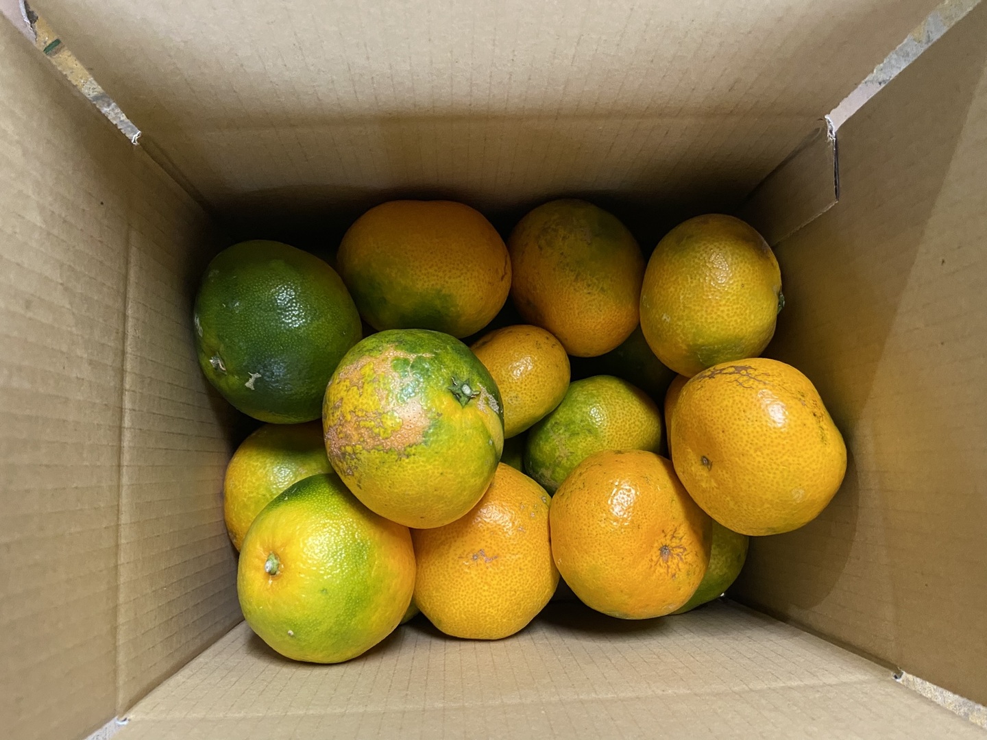 【11月18日~23日収穫】見た目は悪いが味は良い。【選果落ち】早生ミカン3kg。サンプル糖度9.6~11.2度