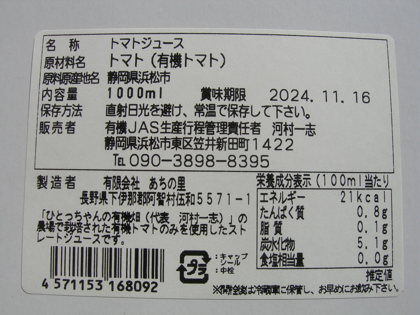 【冬ギフト】有機トマト100%使用のトマトジュース!「ぎゅぎゅっとトマト」1ℓ2本入り