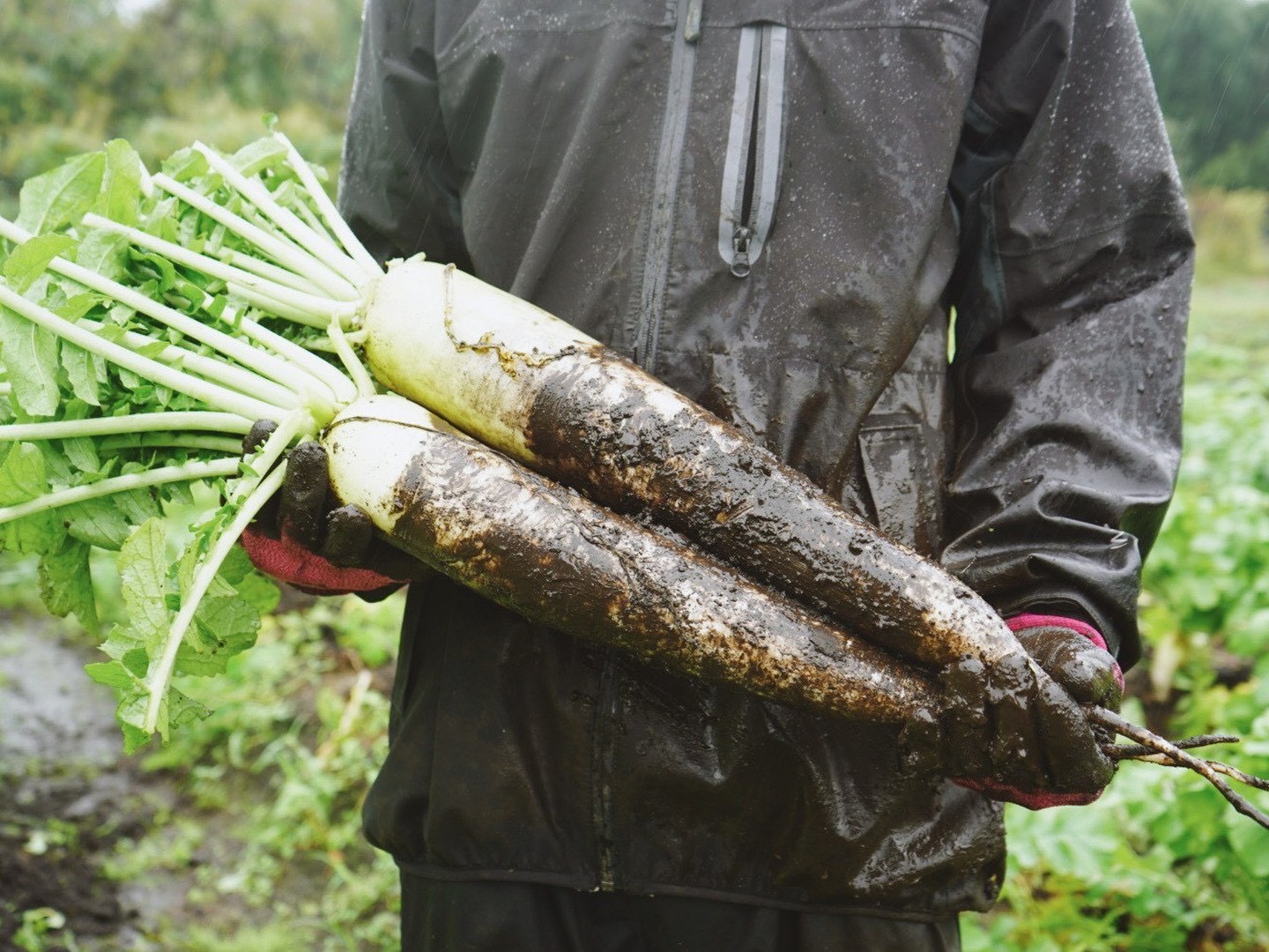 - 水分と糖分をたっぷり蓄えた甘い大根。