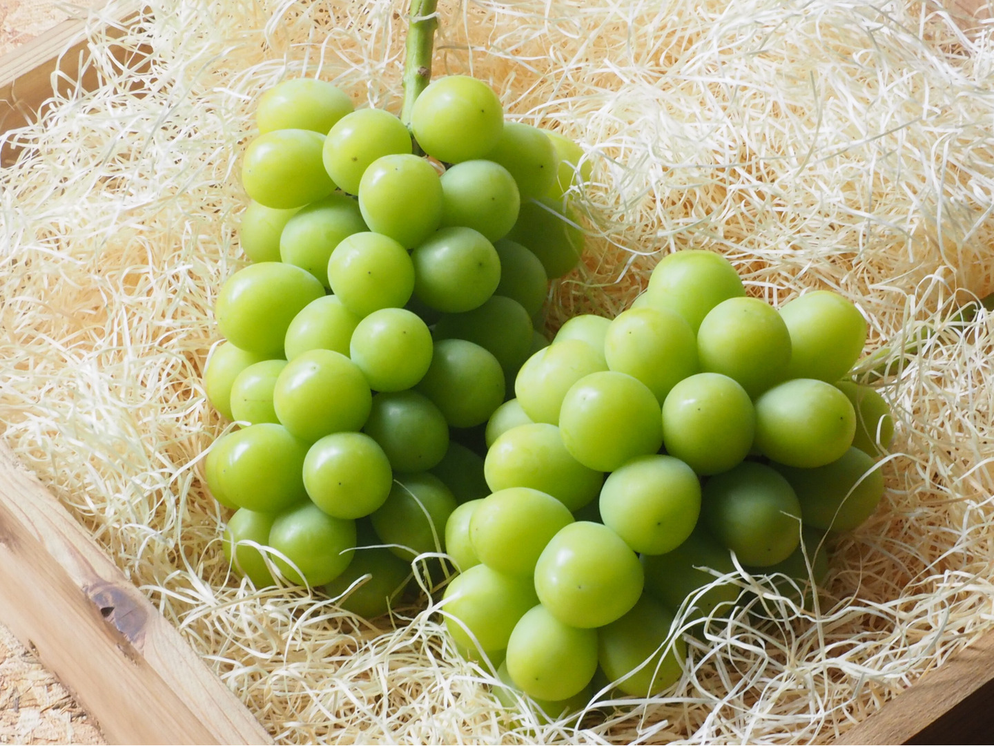 シャインマスカットはマスカットの香りとハリのある食感で皮ごと食べられるのが特徴です。