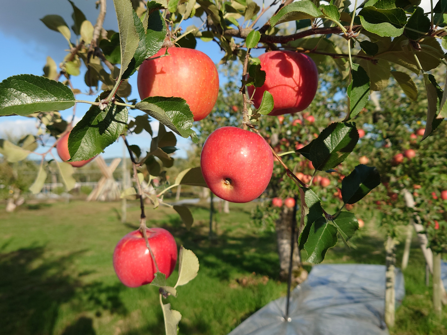 当果樹園は一面にクローバーが敷き詰められています。当たり前のことですが除草剤は一切使用せず全て人力で行います。刈り取った草もまた土壌の栄養となります。