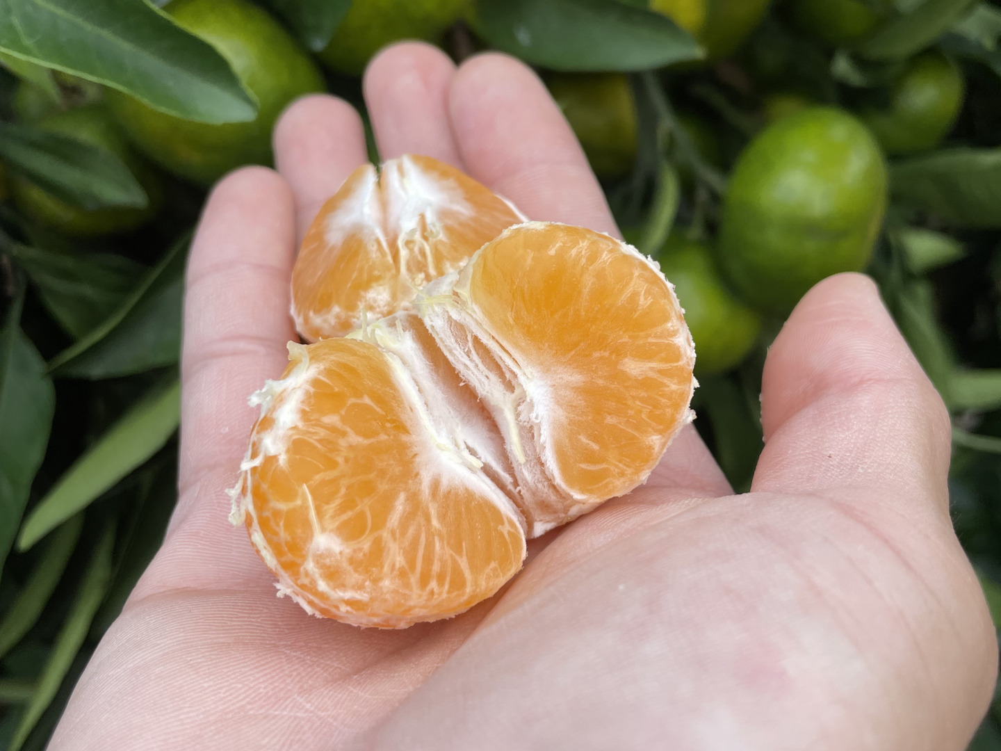 当園では乾燥する畑で栽培しており、こだわりの葉面散布を使用することにより濃厚でコクのある味に仕上げています。10月の蜜柑の中でも糖度が12%程あり、満足のいく味になっています。