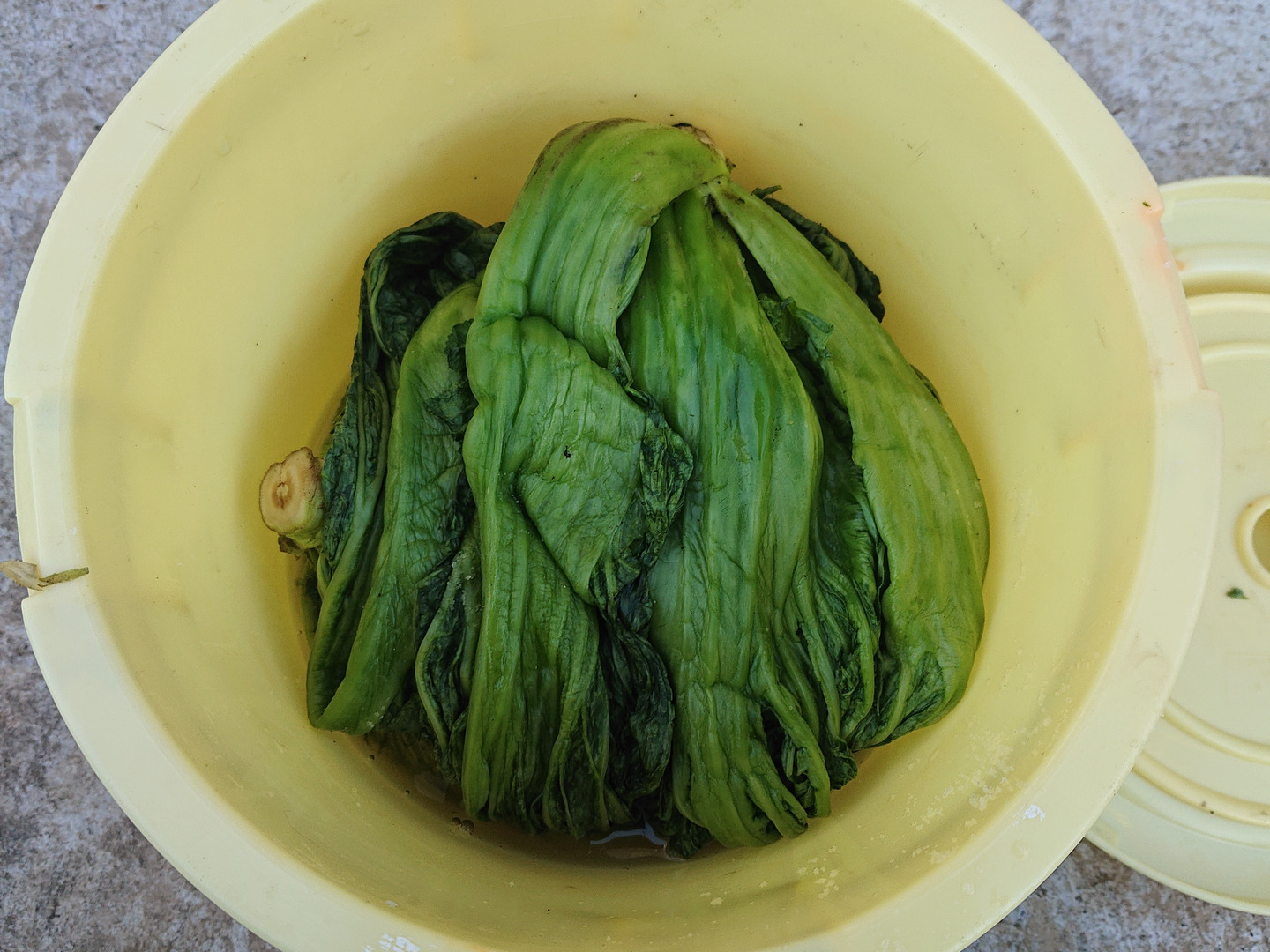 収穫直後の高菜は、肉厚の葉がパキパキ折れてしまうので、