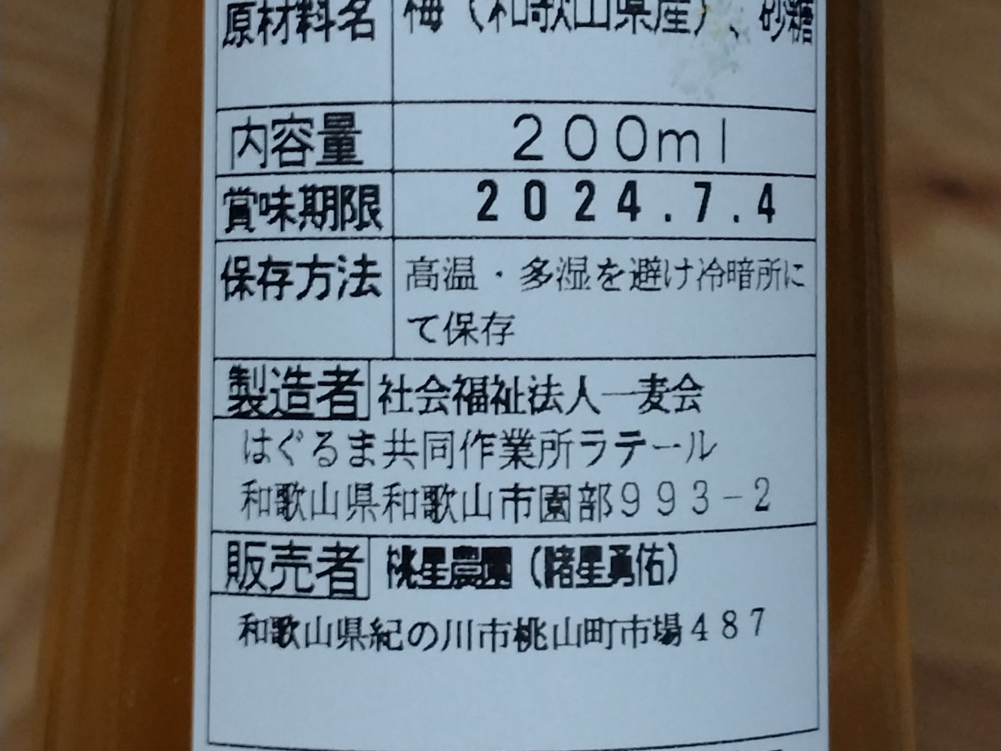 商品について あわせ買い対象 同生産者の別の「あわせ買い対象」商品と一緒にご注文いただくと、送料をまとめてお届けできる場合があります。 生産者からのお知らせ 年末年始休暇のお知らせ下記の期間は、年末年始休業とさせていただきます。[期間]2023/12/16 ~ 2024/01/07 もっと見る 内容 南高梅シロップ200ml 2本セット 重量・容量 約200mℓ 発送 ヤマト運輸(食べチョク特別送料) 送料 ¥ 常温便 + ¥ 0 数量1点ごとに送料が発生します。 種別 加工品 飲料 シロップ 果物 梅 南高梅 産地 和歌山県 農薬化学肥料不使用 果物 加工品 家庭用 動物性堆肥不使用 シロップ 南高梅 和歌山県x果物 和歌山県x加工品 和歌山県x梅 和歌山県x飲料 和歌山県xシロップ 和歌山県x南高梅 商品説明 味梅のエキスがたっぷり出て酸味をよく感じられます。梅と氷砂糖のみで作った無添加なので安心してお召し上がりいただけます。血圧が気になる方や毎日元気に過ごしてほしい方への贈り物にも最適です。梅ジュースなら4~10倍に希釈できるので800ml~2L分も使えます。その他お酒の割り材やドレッシング、料理の隠し味にも使用できます。栽培・生産のこだわり周りに畑もない山奥で農薬を使用せずに草刈をして育てた南高梅です。年に一度だけ有機肥料を与えているので満足頂ける大きさの梅が収穫できます。無肥料の農家とは異なり、収量があるので他の観光農家から梅を買い取ることもなく桃星農園の梅100%で加工しました。産地の特徴圧倒的に生産量が日本一の和歌山県です。その土地で生まれた南高梅をその土地で育てているので価値があると思います。品種の特徴南高梅は青梅でも熟梅でも利用しやすい品種です。梅ジュースに梅酒、梅ジャムに梅干しなど様々な加工が楽しめます。 もっと見る この商品のことをお友達にもシェアしませんか ポスト シェア