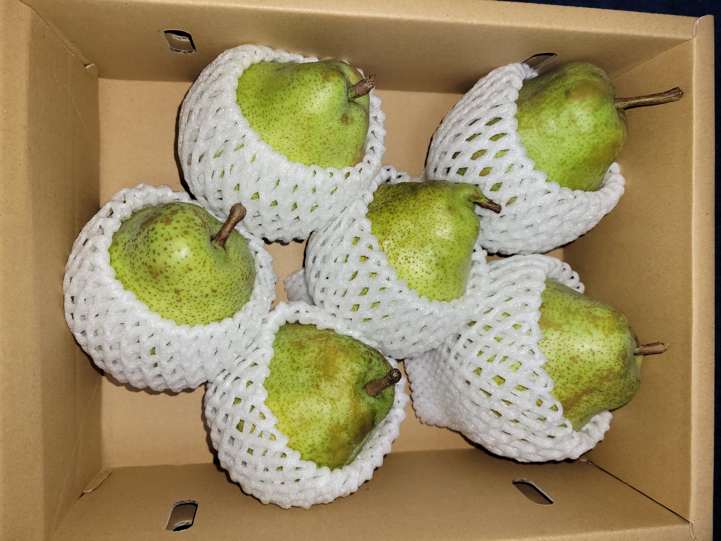西洋梨は、和梨のようにもぎ取り後すぐ食べられるのではなく、追熟作業(冷蔵・加温)を行ってから、食べ頃をお届けしております。