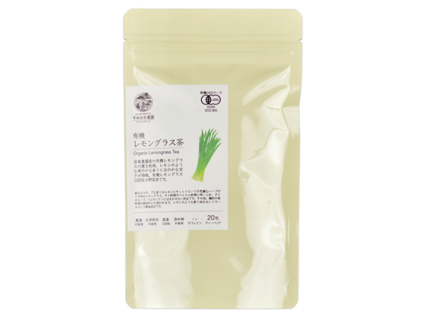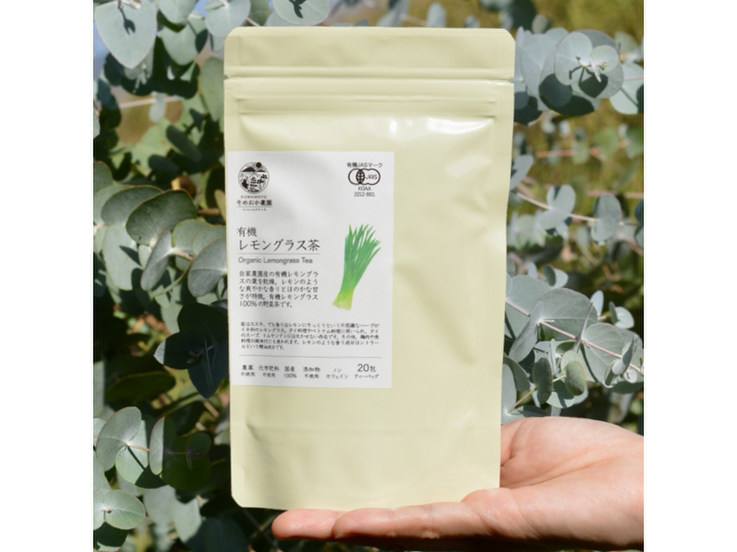 自家農園産の有機レモングラスの葉を乾燥。レモンのような爽やかな香りとほのかな甘さが特徴。有機レモングラス100% の野菜茶です。