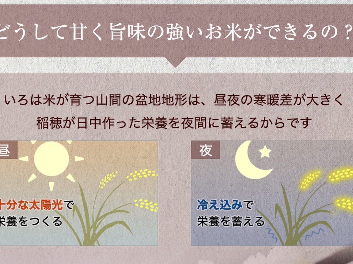 - 山間地特有の昼夜の寒暖差のおかげで旨味の強いお米です!