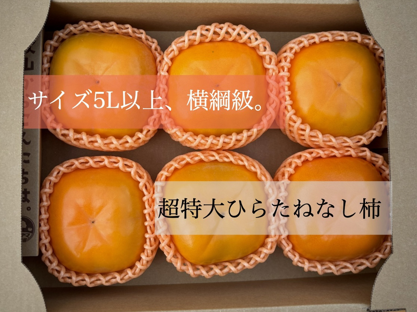 和歌山県産 5L以上 超特大ひらたねなし柿 6玉入り