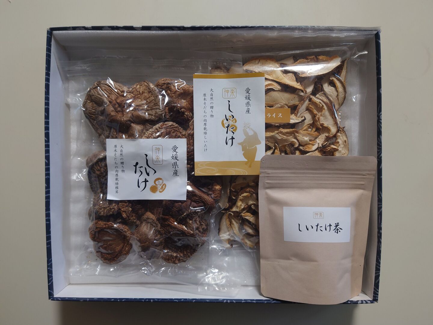 - 贈答品としても使える箱入り、原木乾燥しいたけセット