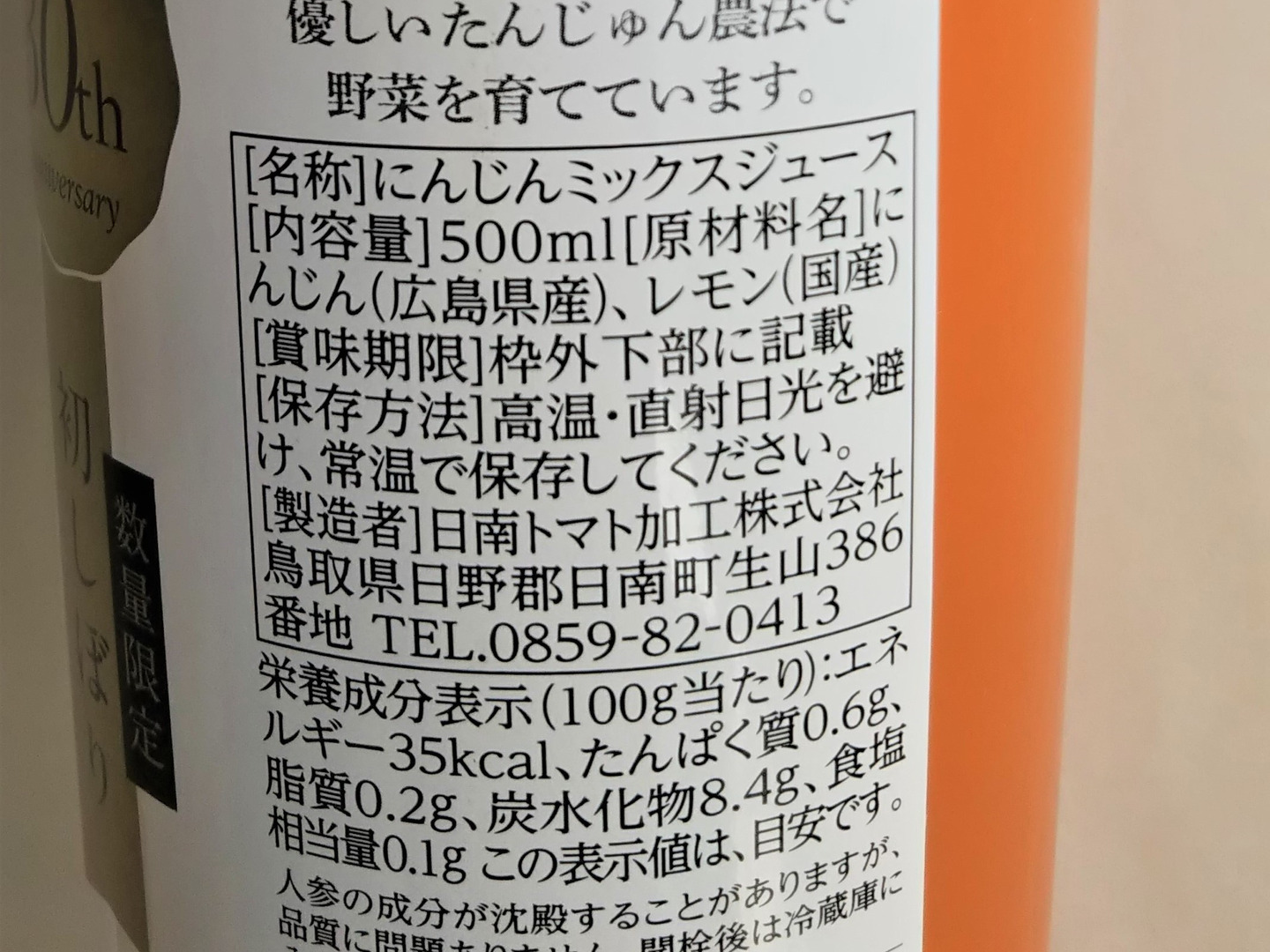 国産レモンと自社栽培の人参のみを使った、無添加ミックスジュースです。