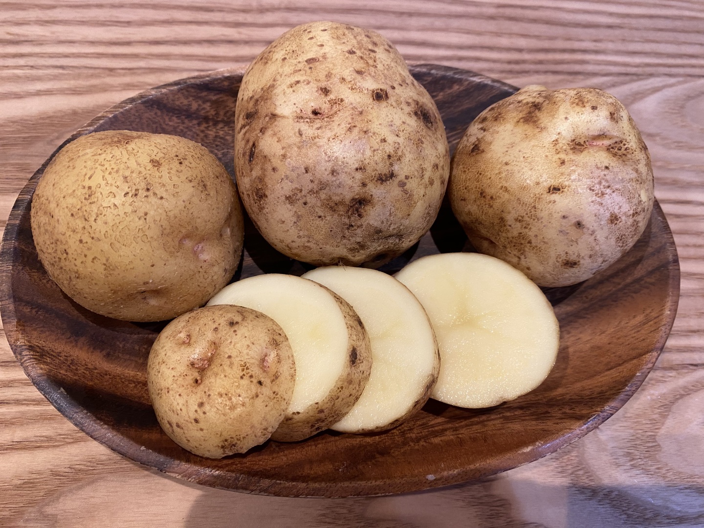 『キタアカリ』は、栗のような甘みと黄色い果肉でホクホクした食感と、しっとりしたなめらかな口当たりの美味しいジャガイモです。