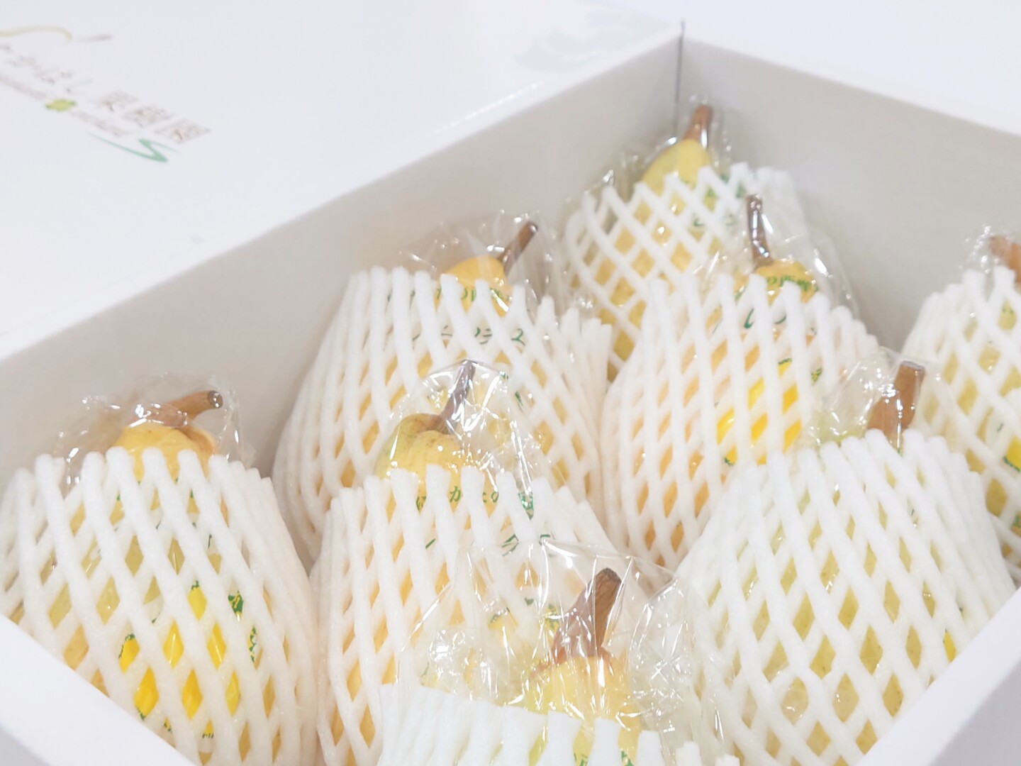 こちらのお品物は果実のサイズがひとつ250g前後の小さめのル・レクチェを箱詰めしたお品物になります。