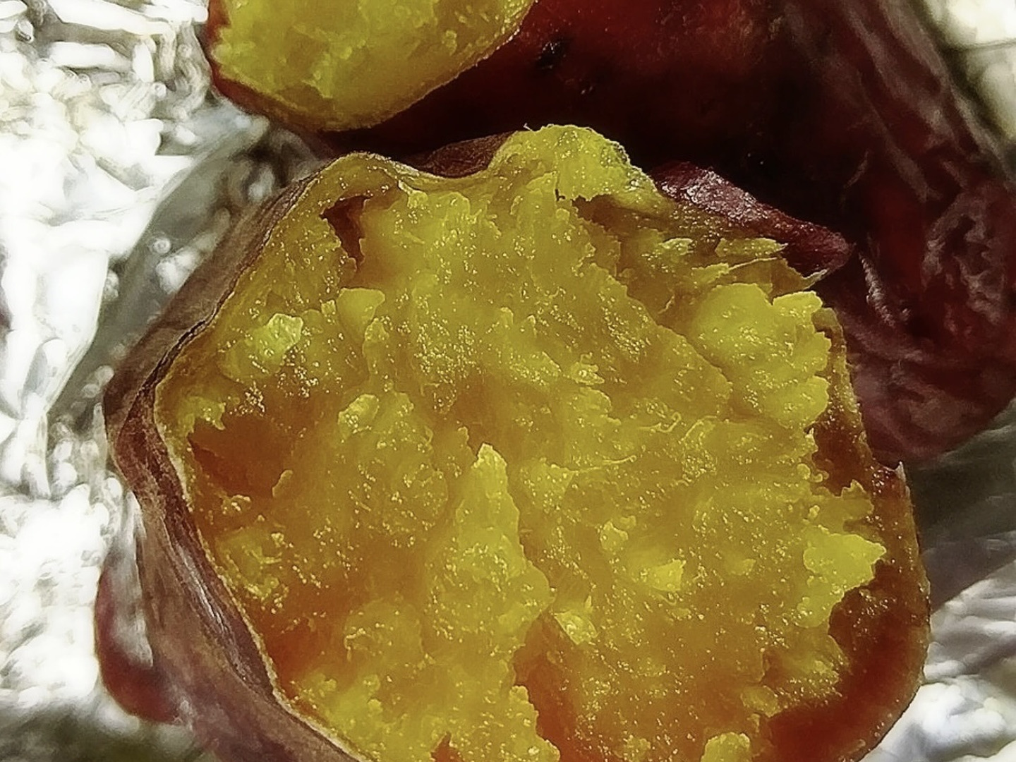 これを焼くなど加熱すると黄色くホクホクとして上品な甘さの焼き芋に仕上がります。近年注目されているしっとり甘々とは違い、どことなく懐かしさを感じるほっこりするような優しい味わいです。