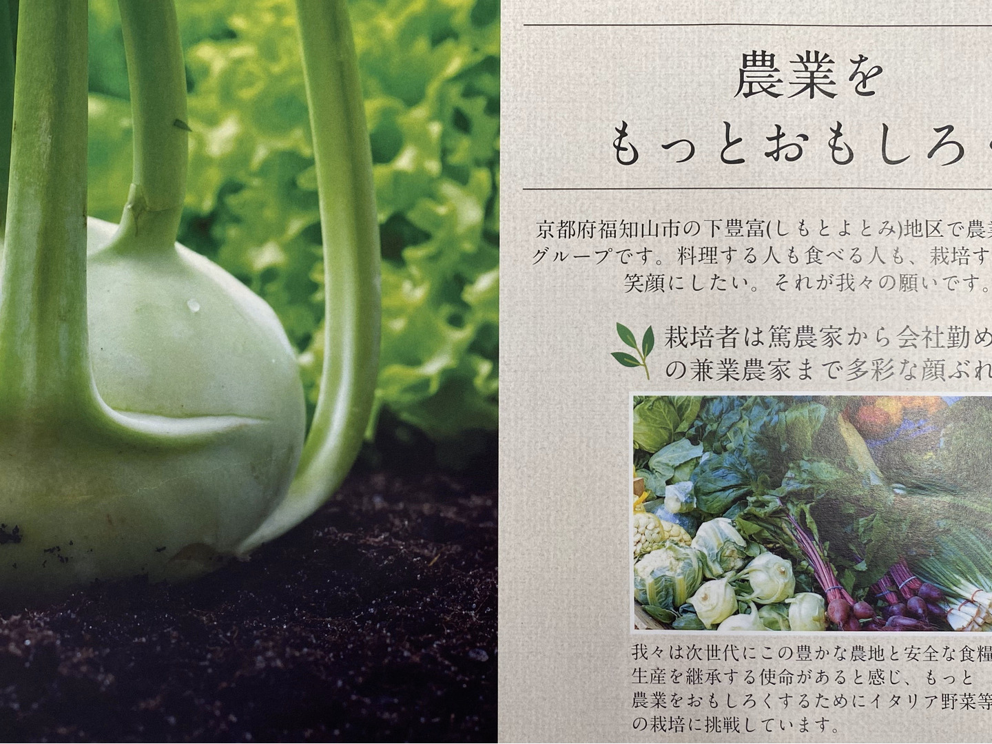 - 1 京都から鮮度とおいしさにこだわるイタリア野菜栽培グループです