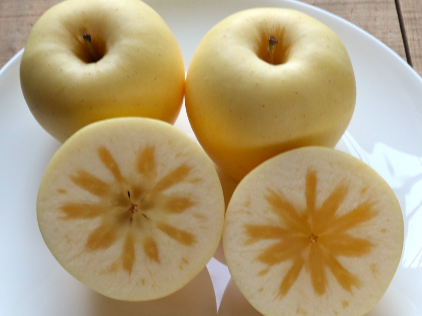 - 黄色いりんごでは珍しく放射状の蜜が入りやすい