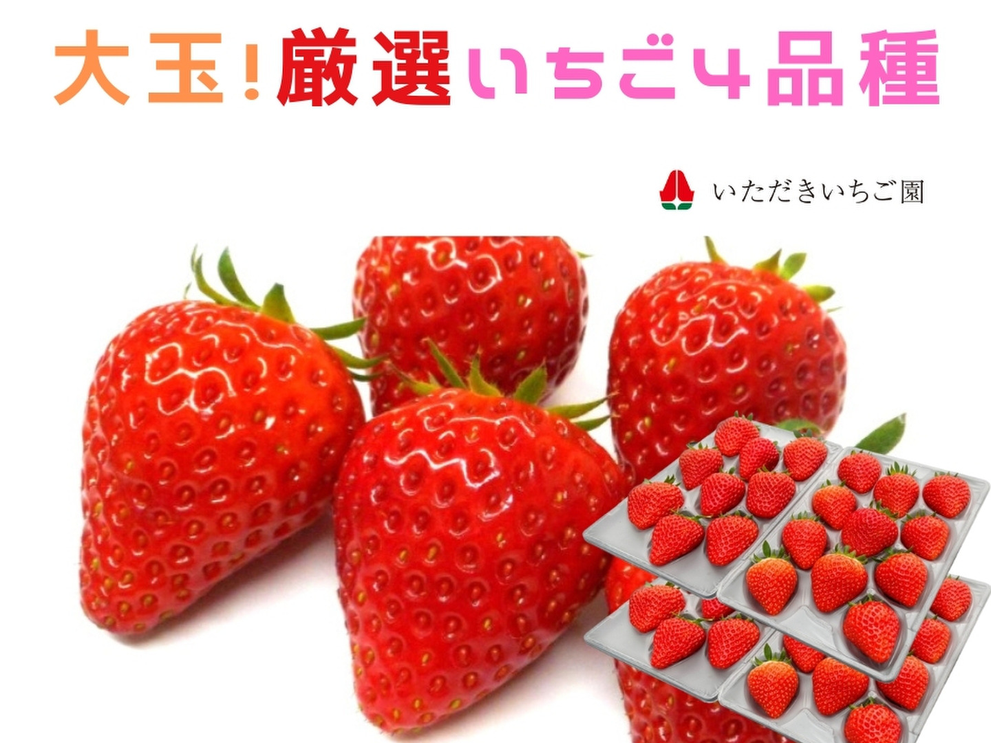 まるでいちご狩りをしているかのような4品種の大玉いちごを食べ比べができる贈答用セットです。