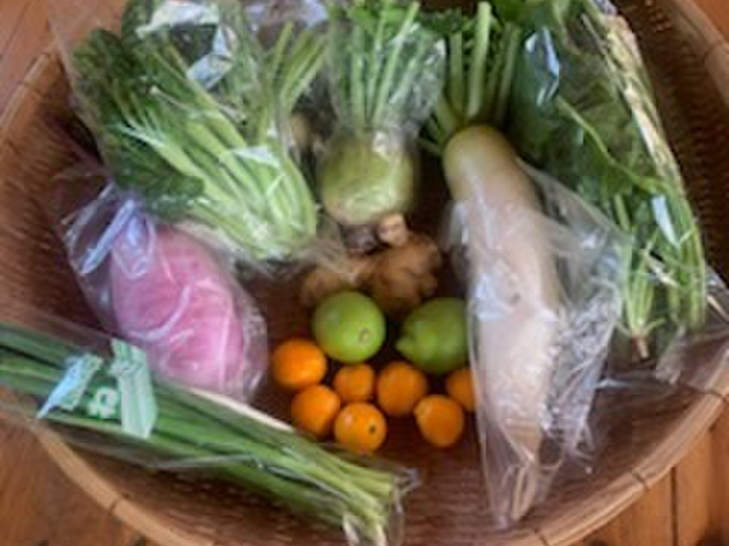 現在11月10日に採れている野菜は、赤大根、紅心大根、パクチー、ニンニク、里芋、ほうれん草、コカブ、キンカン、里芋、九条ネギなどです。などです。