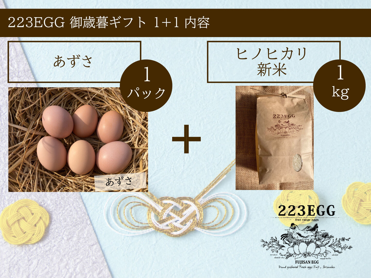 223EGGの平飼い卵をセットにしてお届けいたします。