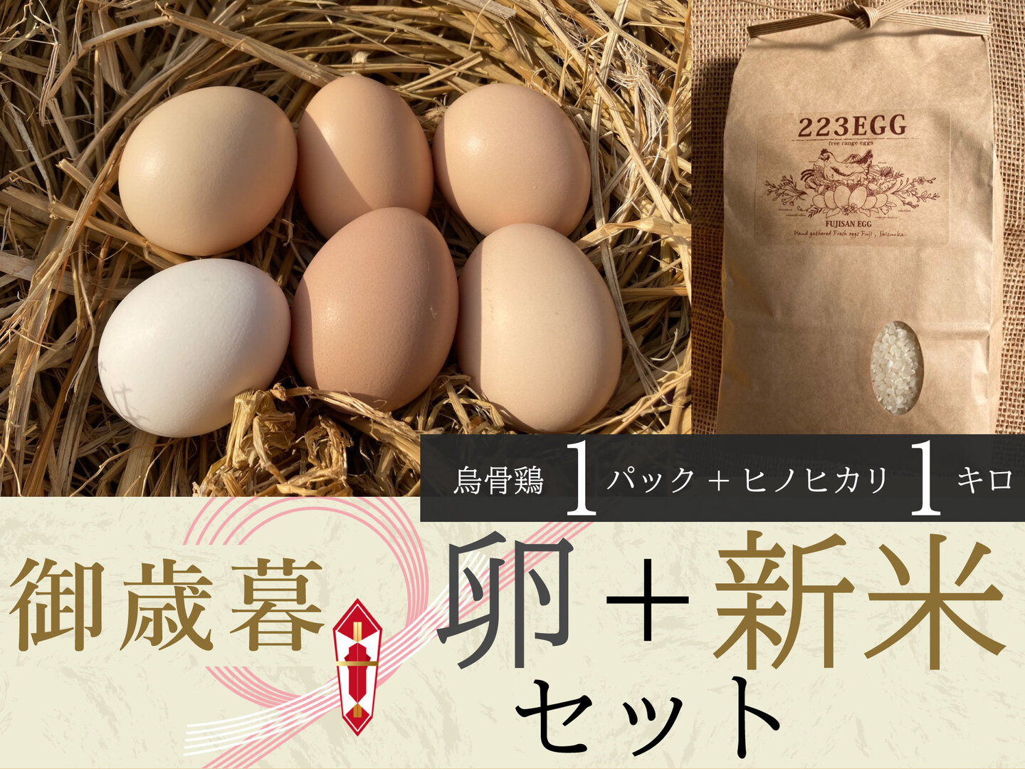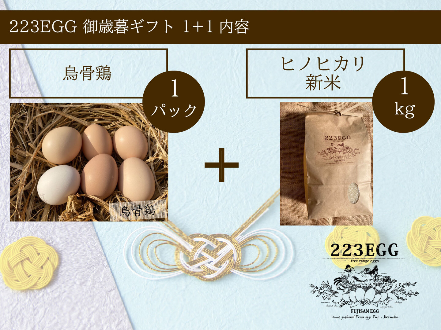 223EGGの平飼い卵をセットにしてお届けいたします。