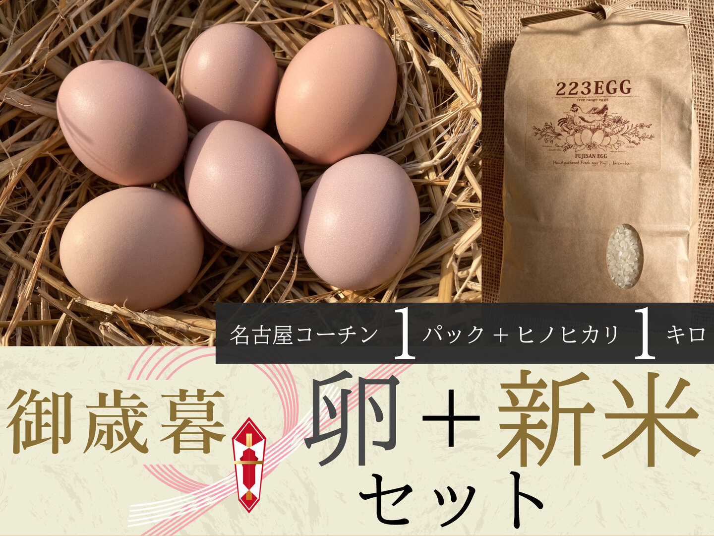223EGGの平飼い卵をセットにしてお届けいたします。