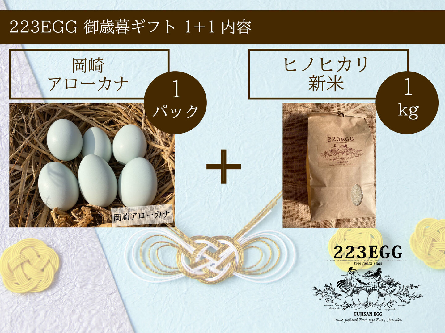 223EGGの平飼い卵をセットにしてお届けいたします。