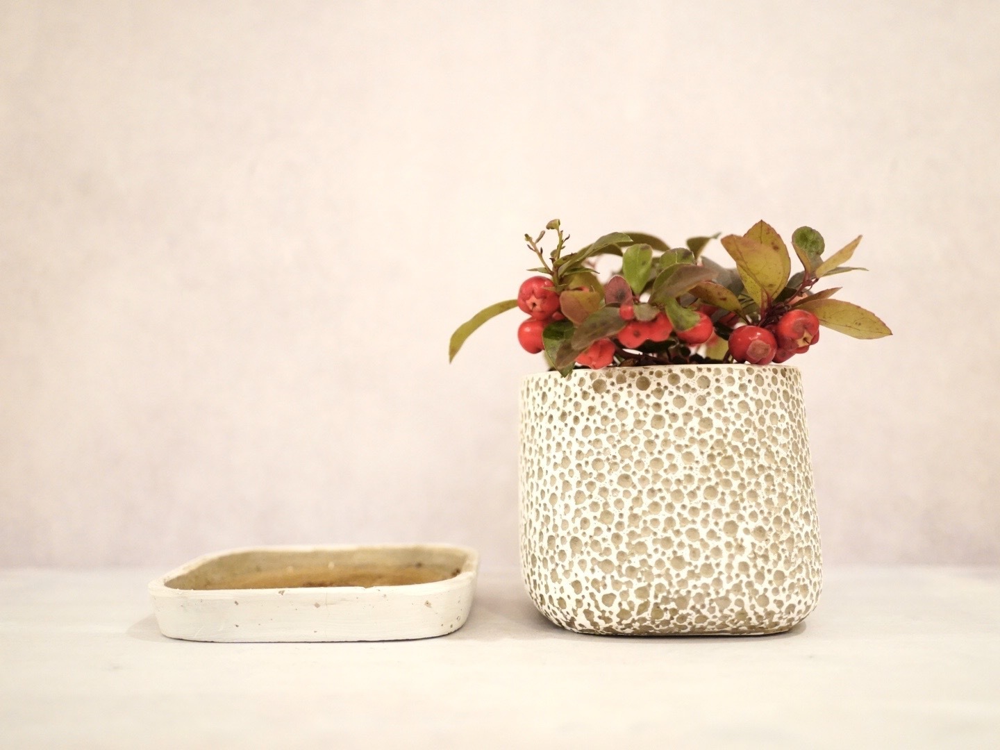 冬に大人気のチェッカーベリーの苗木を、ハイドロボールを使用してミニ盆栽に仕立てました。
