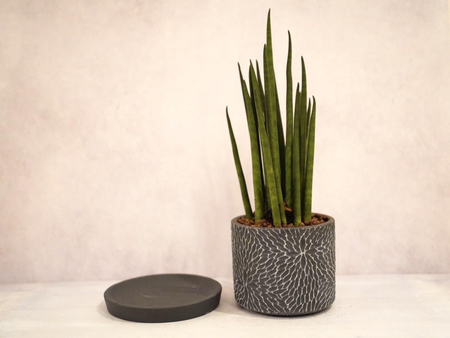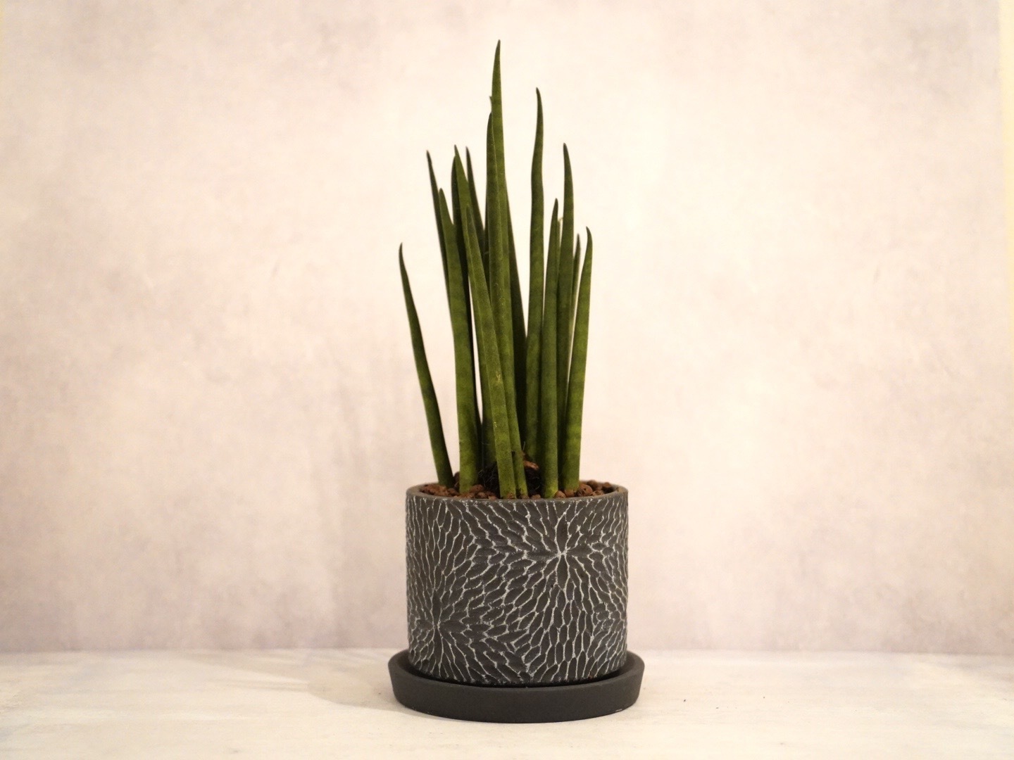 サンスベリアの葉はマイナスイオンを放出することでも有名で、高い空気清浄効果が期待できるとされています。
