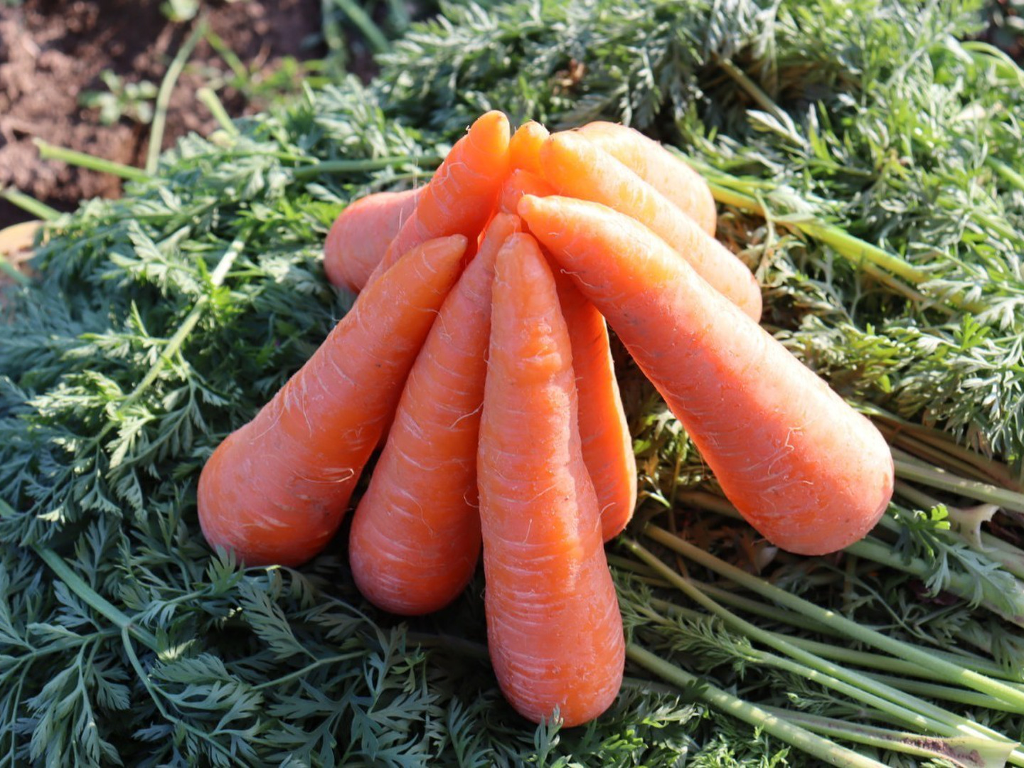 根の色は鮮やかな紅色で、肌は滑らかでツヤがあり、先のほうまで太く食味が良い西洋ニンジンです。 ニンジン独特の臭みもなく、クセがなく甘みの強いのが特長です