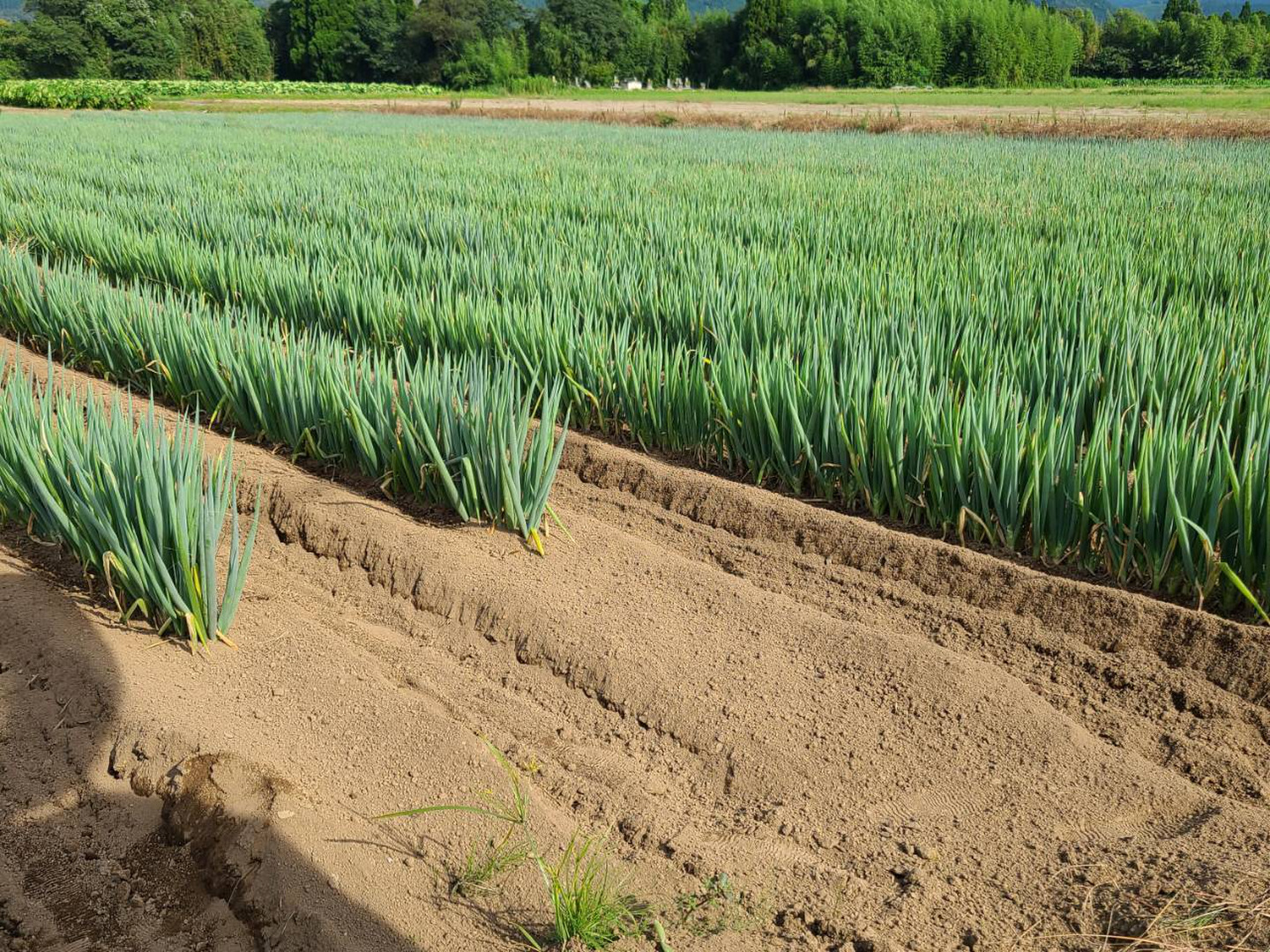 油かす、堆肥、カキがらを元肥に種まき、土寄せ時に有機物が入った肥料散布