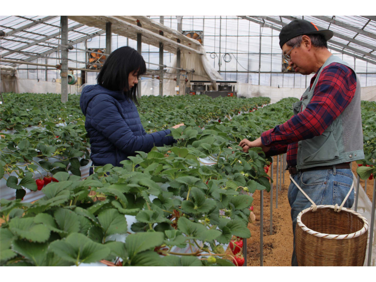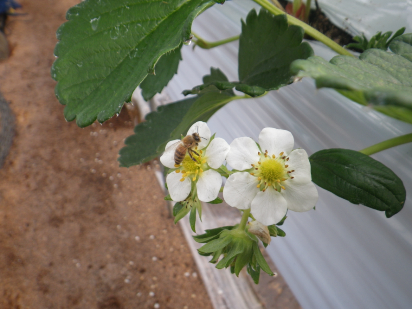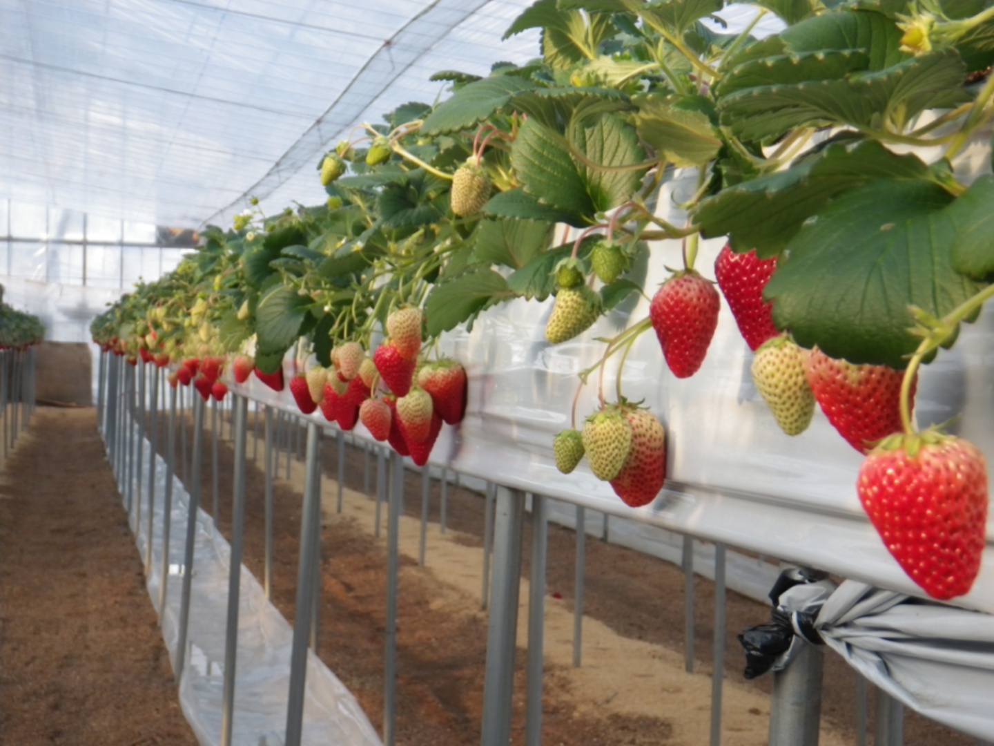 数年前から害虫の天敵や病原菌へ対抗する微生物などを使い始めました。今ではイチゴが開花してからは有機JAS基準をクリアできるくらい、ほぼ農薬を使わずに育てておりますので、安心してお召し上がりいただけます。