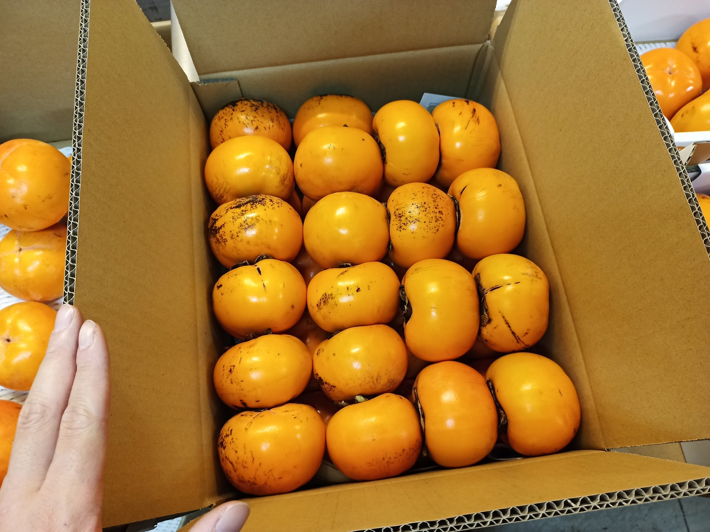 柿の表面にキズ、スレ、日焼け、色ムラ、やわらか等ございます。