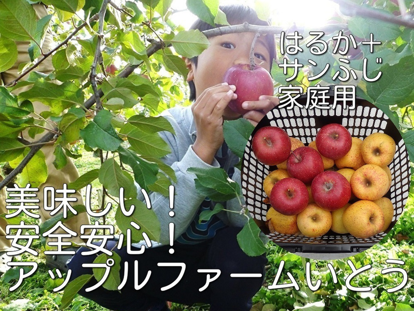 サンふじ+はるか 家庭用 1.8~1.9キロ【小玉】JA基準より60%減の低農薬栽培 【りんご食べ比べ】
