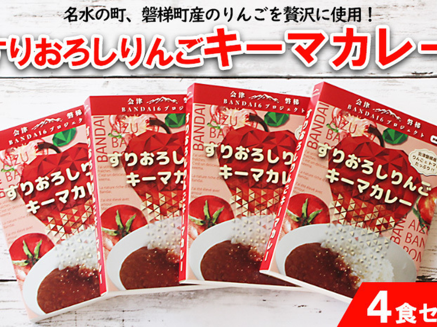 名水の町、磐梯町産のりんごを贅沢に使用!すりおろしりんごキーマカレー4食セット
