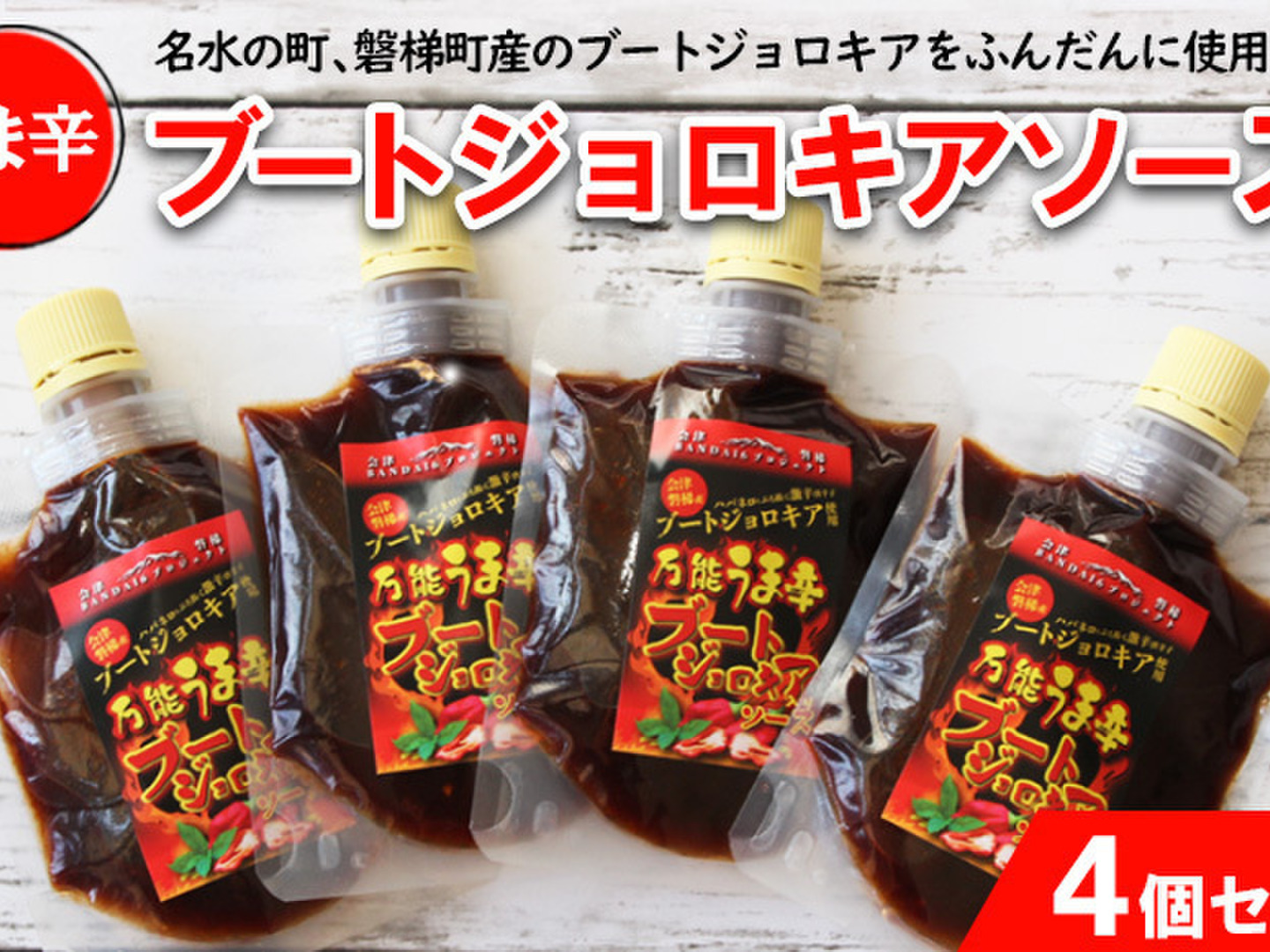 名水の町、磐梯町産のブートジョロキアをふんだんに使用!うま辛ブートジョロキアソース4個セット