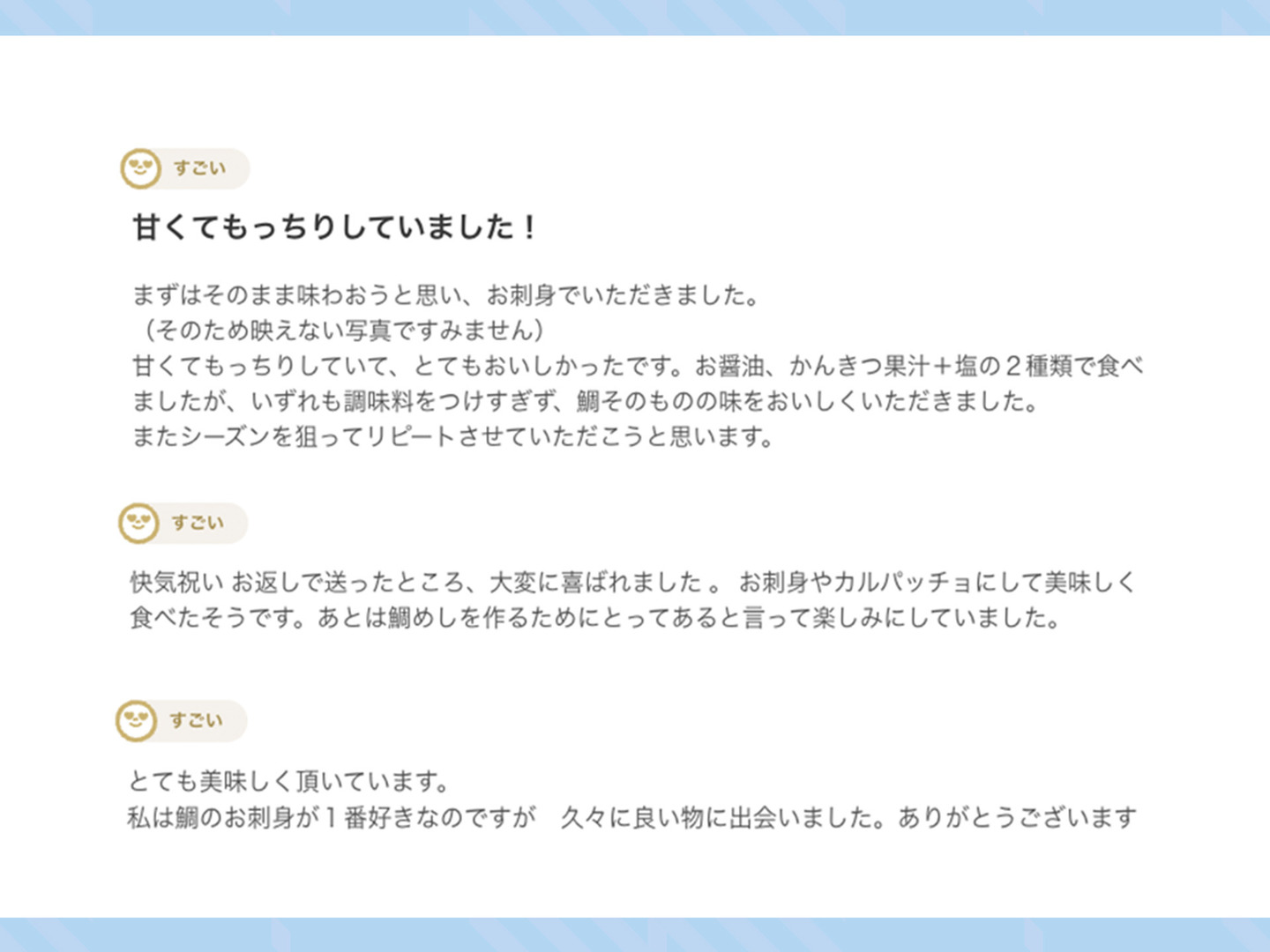 - 1 こんな鯛食べたことない! 絶妙な肉厚感と甘み!