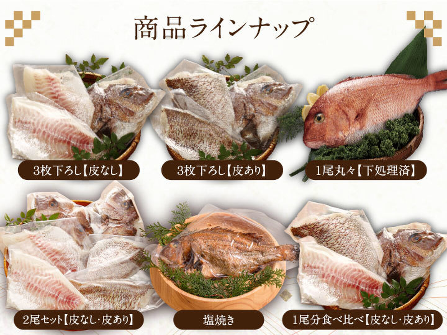 - 4 すぐ食べ“たい”人は、 三枚おろし。 自分でさばき“たい”人は、 丸々一匹。