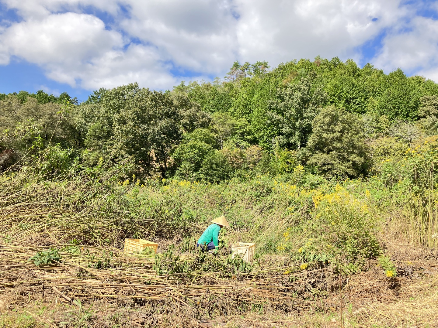 京都の自然豊かな森の中の畑で、きれいな空気、山からおりてきた湧き水をたくさん吸収し、のびのび育った菊芋です。