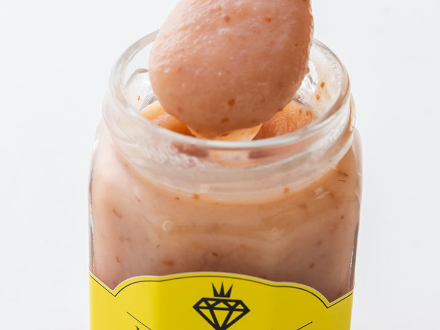 完熟で摘み取った”食べる宝石 ミガキイチゴ”を100%使用し、食品添加物無添加で甘酸っぱくて濃厚な味わいに仕上げました。ごろっとした粒感で、ミガキイチゴそのままのおいしさを楽しんでいただけます。