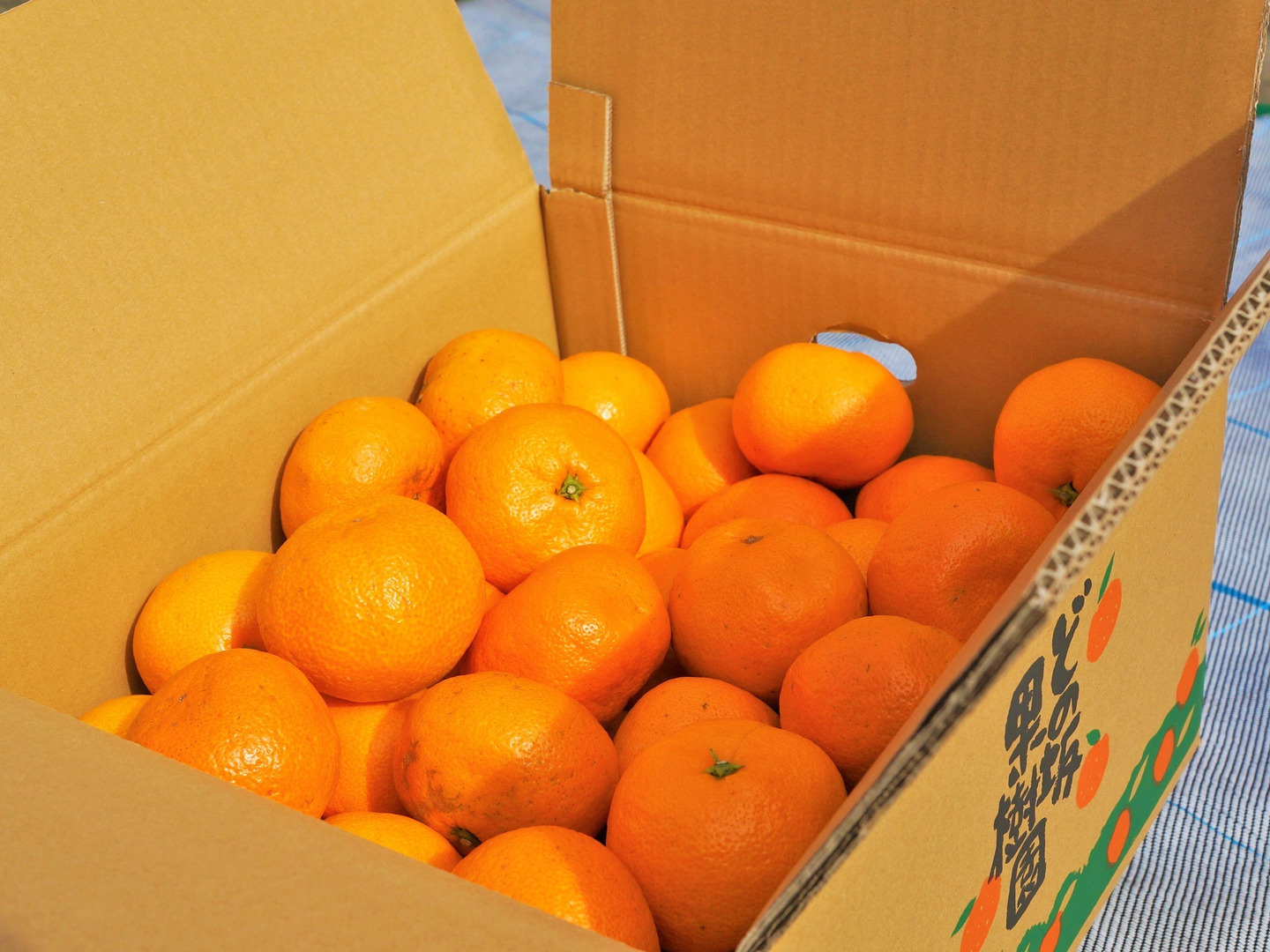通常、「早生みかん」は11月の品種です。我が家では12月まで樹上に着果させ美味しい果実のみを収穫し、「完熟早生」として販売しています。果実は美味しい証の「菊ミカン」(果皮がボコボコ)となり、糖度は非常に高くなります。