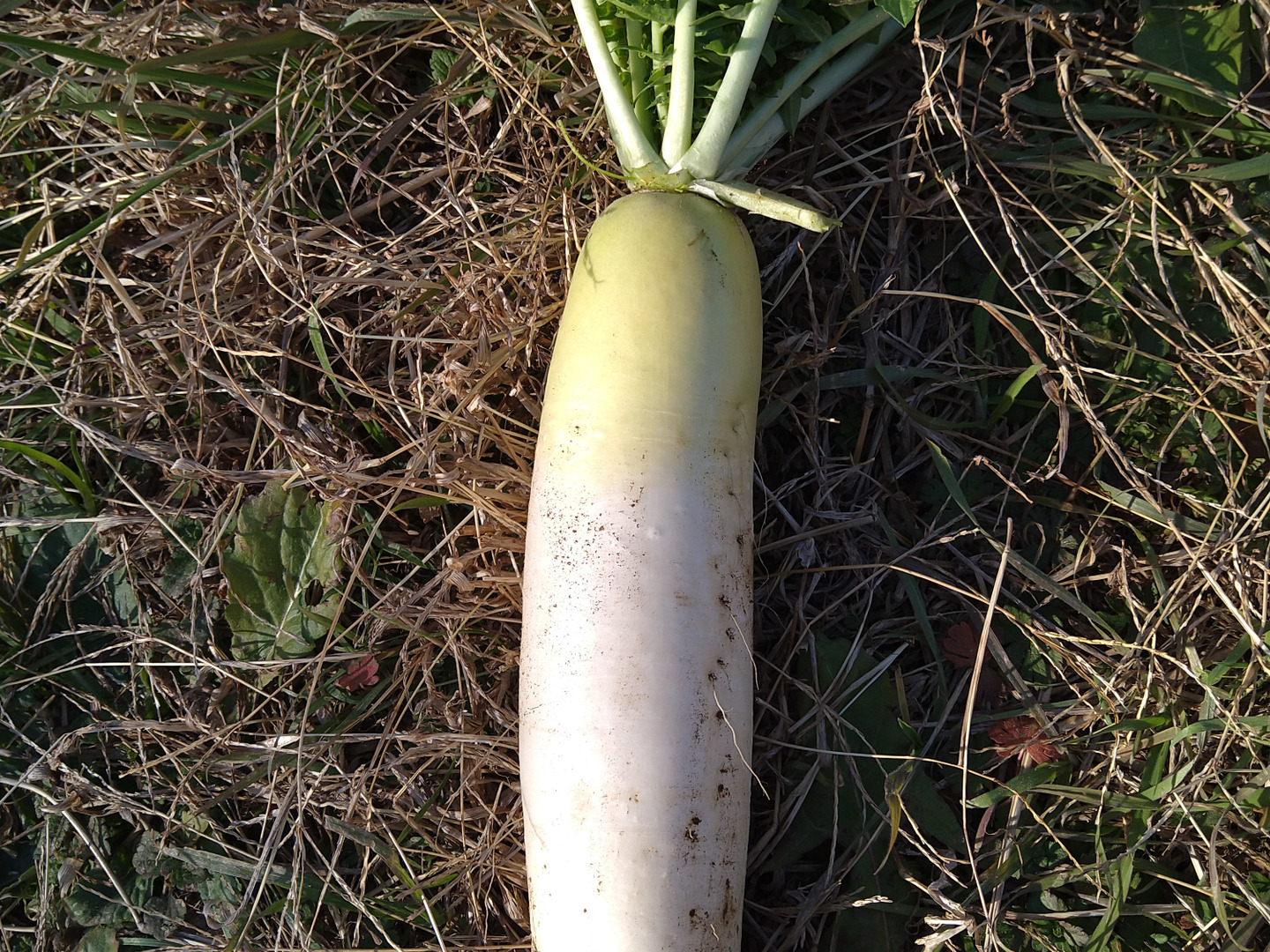 - 化学肥料不使用なので、ミニ大根ですが、じっくりおいしく育っています