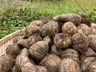 京都の自然豊かな森の中の畑で、きれいな空気、山からおりてきた湧き水をたくさん吸収し、のびのび育った里芋です。
