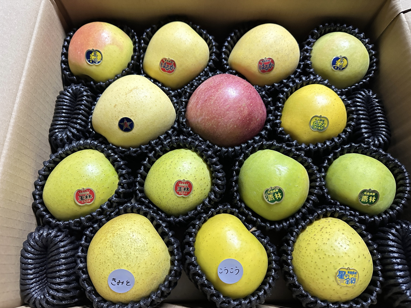 比較的綺麗なリンゴを詰め合わせますが、家庭用りんごも含まれるため、