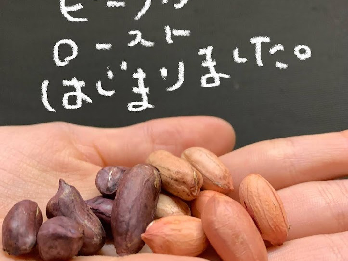 収穫 乾燥 サヤむき 焙煎 すべて手作業です。