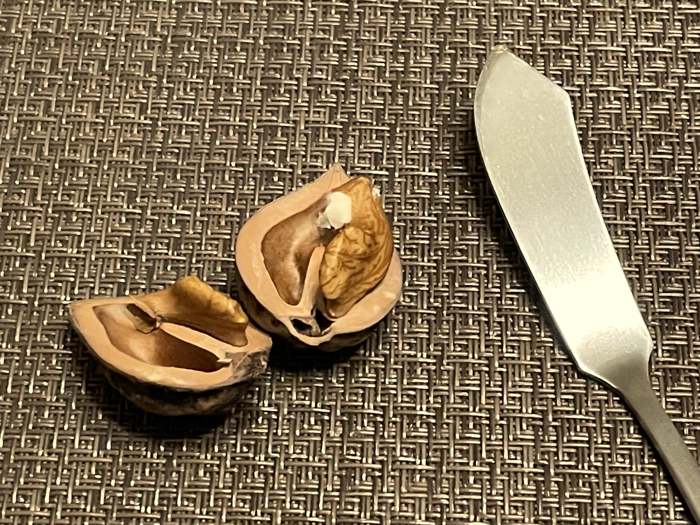 一晩水につけてからローストすると、クルミの殻が少し開くので、バターナイフなどを使って比較的簡単に殻を割ることもできます。