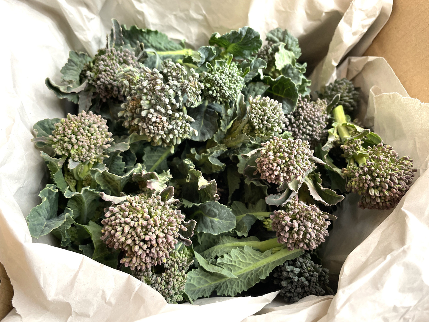 冬の寒気に当たるとアレッタの花蕾は紫色に変色する場合があります。これはアントシアニン(ポリフェノールの一種)の色で、紫がかったアレッタは抗酸化作用と甘みがより増して美味しくなっています。