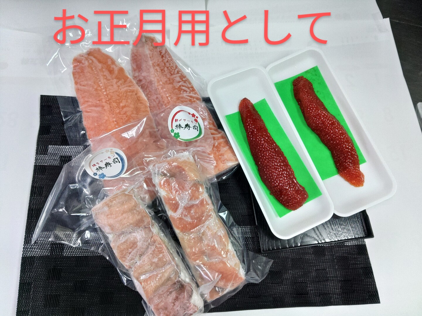 | 内容 | 渓流お刺身サーモン 1枚180gから250gの2入れ約500g焼サーモン棒寿司酢シメサーモン棒寿司サーモントラウト筋子200g | ||||||