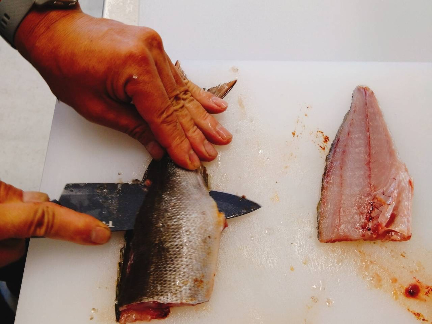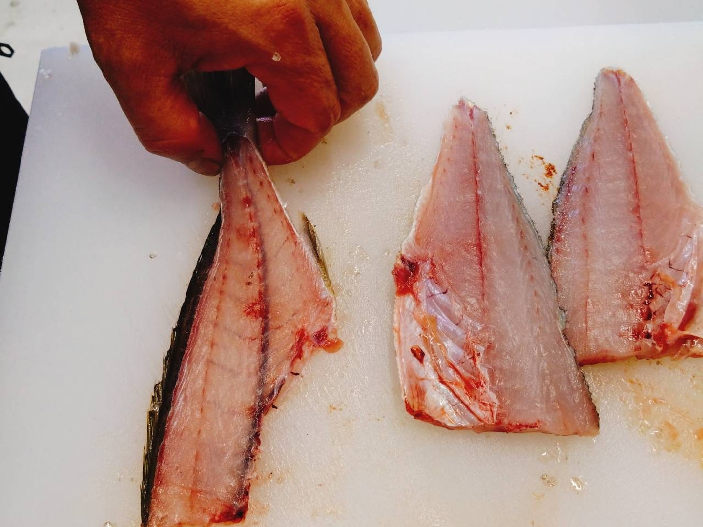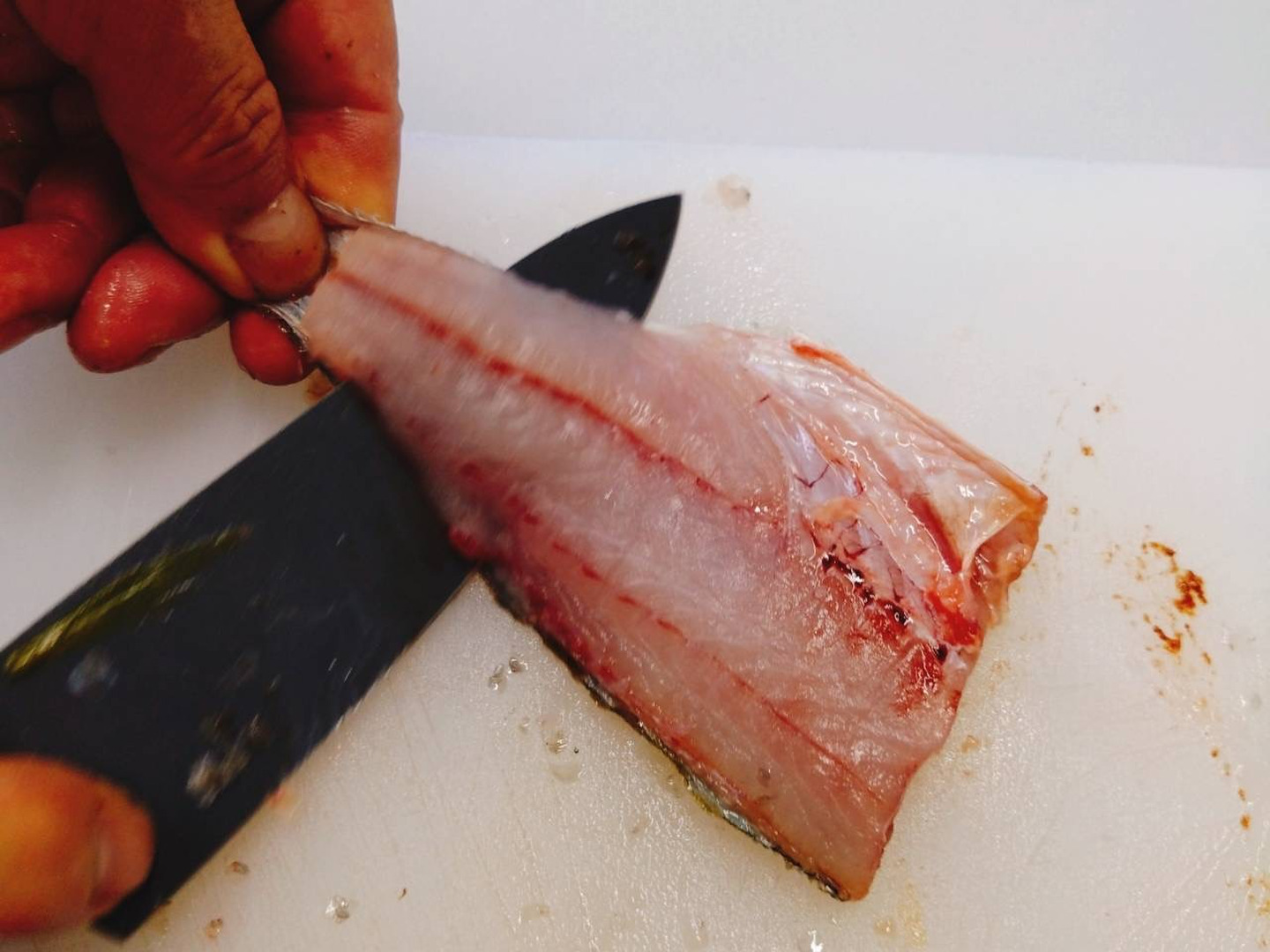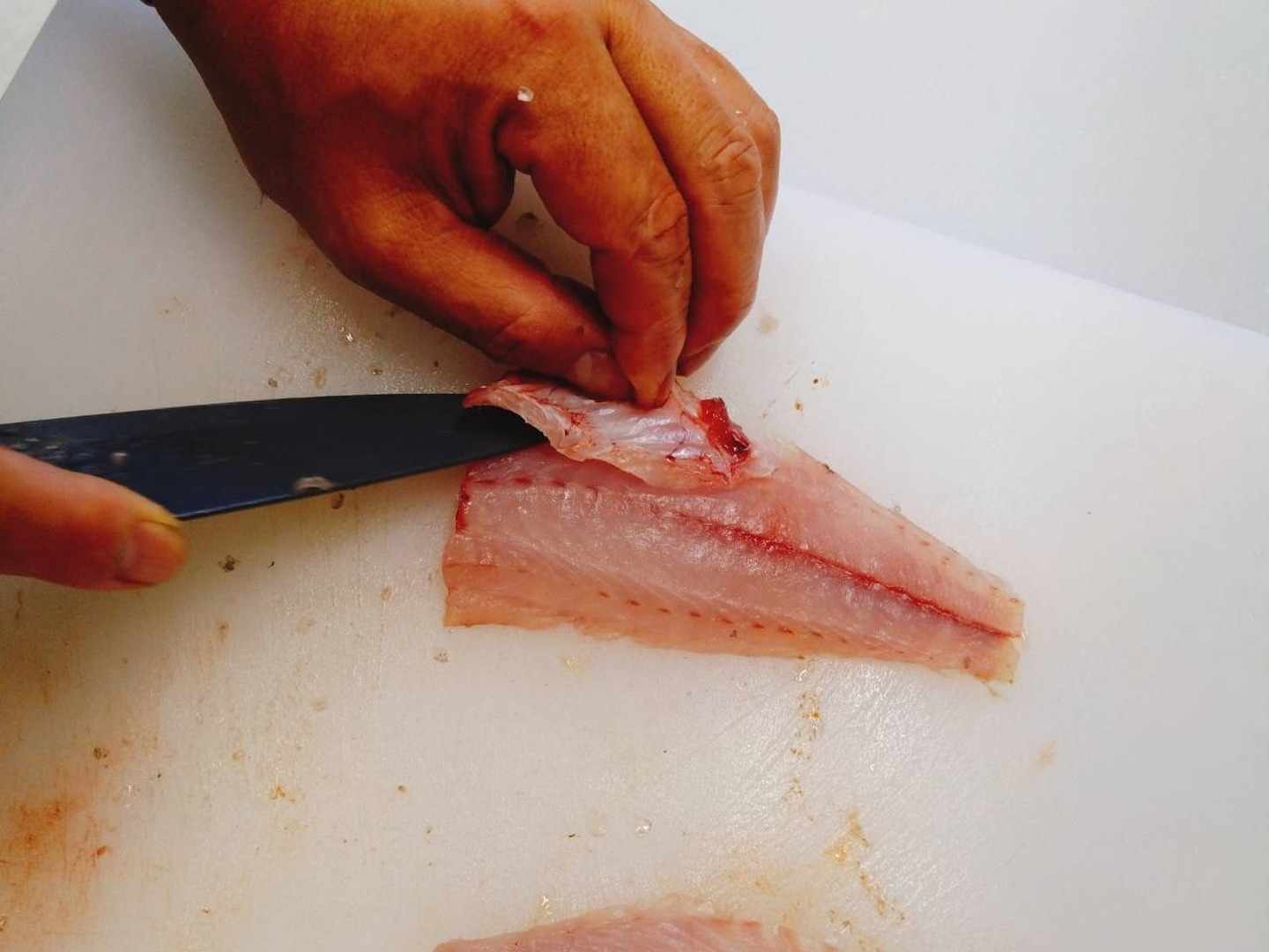 - 骨を取り除き、食べやすい一口サイズにカット!